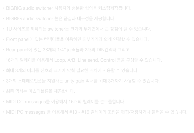 BIGRIG audio switcher 사용자와 충분한 협의후 커스텀제작됩니다.